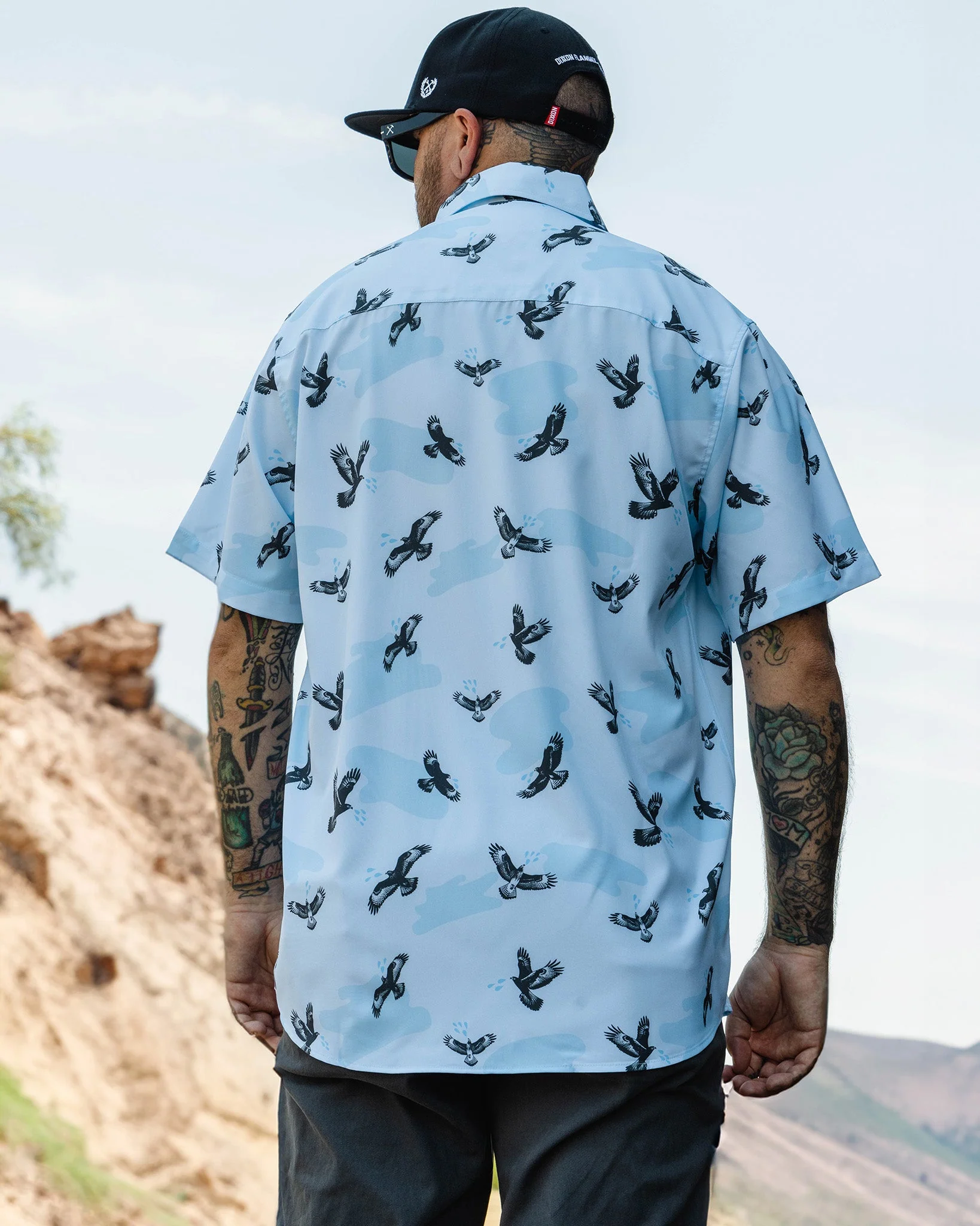 Let the jokes fly and the good times roll. The Mike Hawk Party Shirt brings unapologetic energy with spitting hawks soaring across a light blue backdrop. Built with our signature party blend, this short sleeve button up is lightweight, wrinkle resistant, and made to stir the pot.